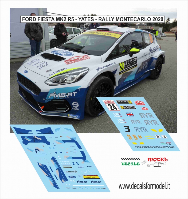 DECALS 1:43 FORD FIESTA R5 MK2 - YATES - RALLY MONTECARLO 2020