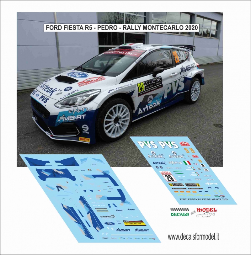 DECALS 1:43 FORD FIESTA R5 MK 2 - PEDRO - RALLY MONTECARLO 2020