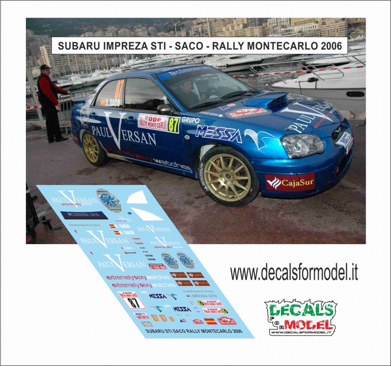 DECALS 1:43 - SUBARU IMPREZA STI - SACO - RALLY MONTECARLO 2006