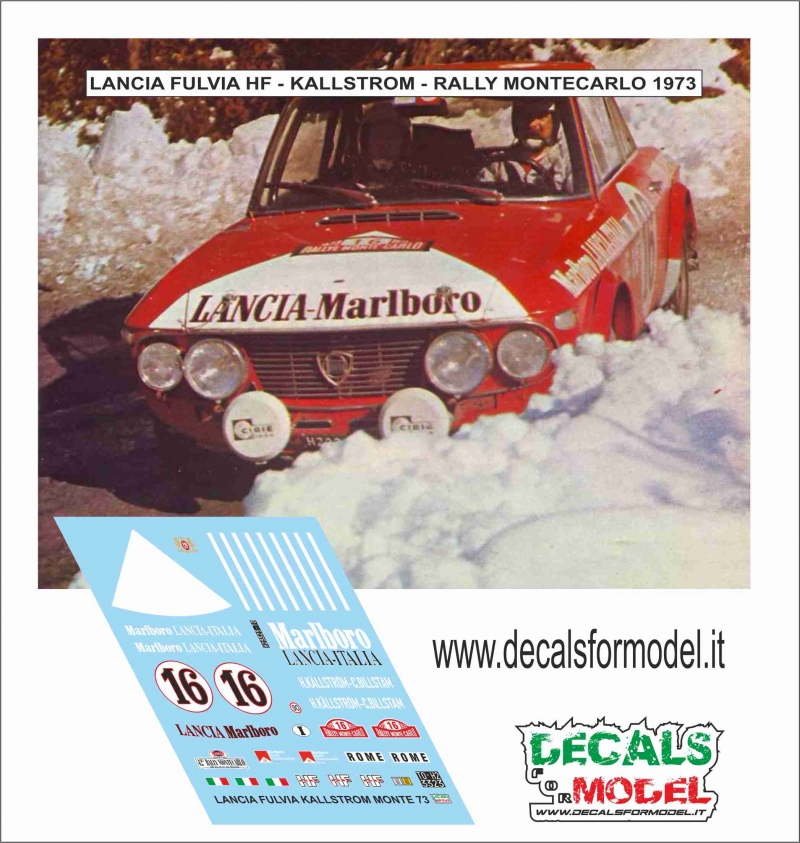 DECALS 1:24 - LANCIA FULVIA HF - KALLSTROM - RALLY MONTECARLO 1973