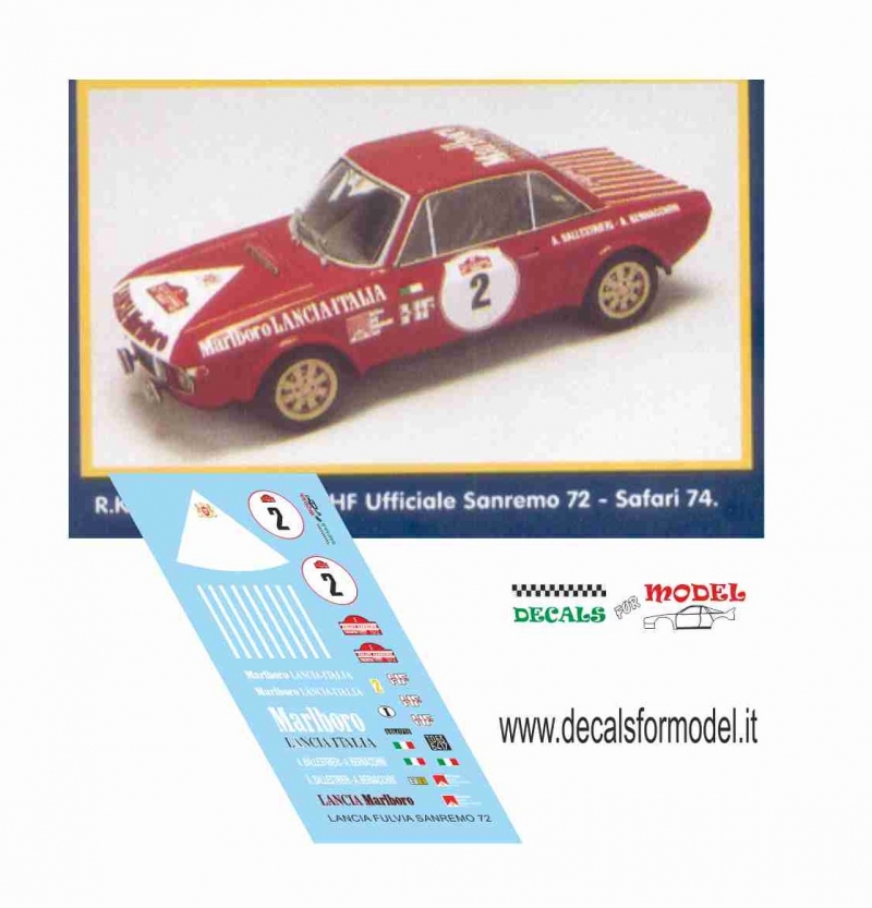 DECALS 1:24 - LANCIA FULVIA HF - BALLESTRIERI - RALLY SANREMO 1972